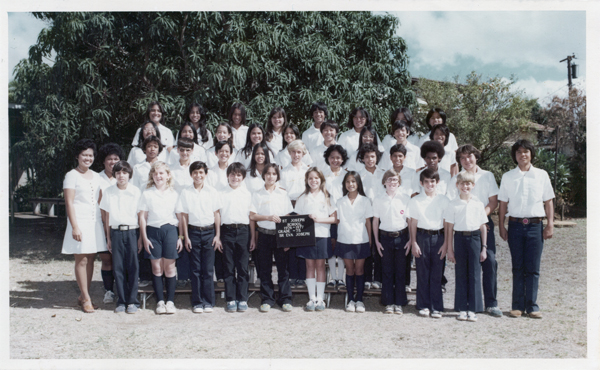 Second Row: Lynn Spencer, Patrick Tom, Terrie Knight, Gregory Moniz, Robert Garrity, Lisa Fouts, Sheila Baldwin, Elden Esmeralda, ?, Thomas Maze, Mary Mau, Gaylen Ikeda, Mr deNeeve.